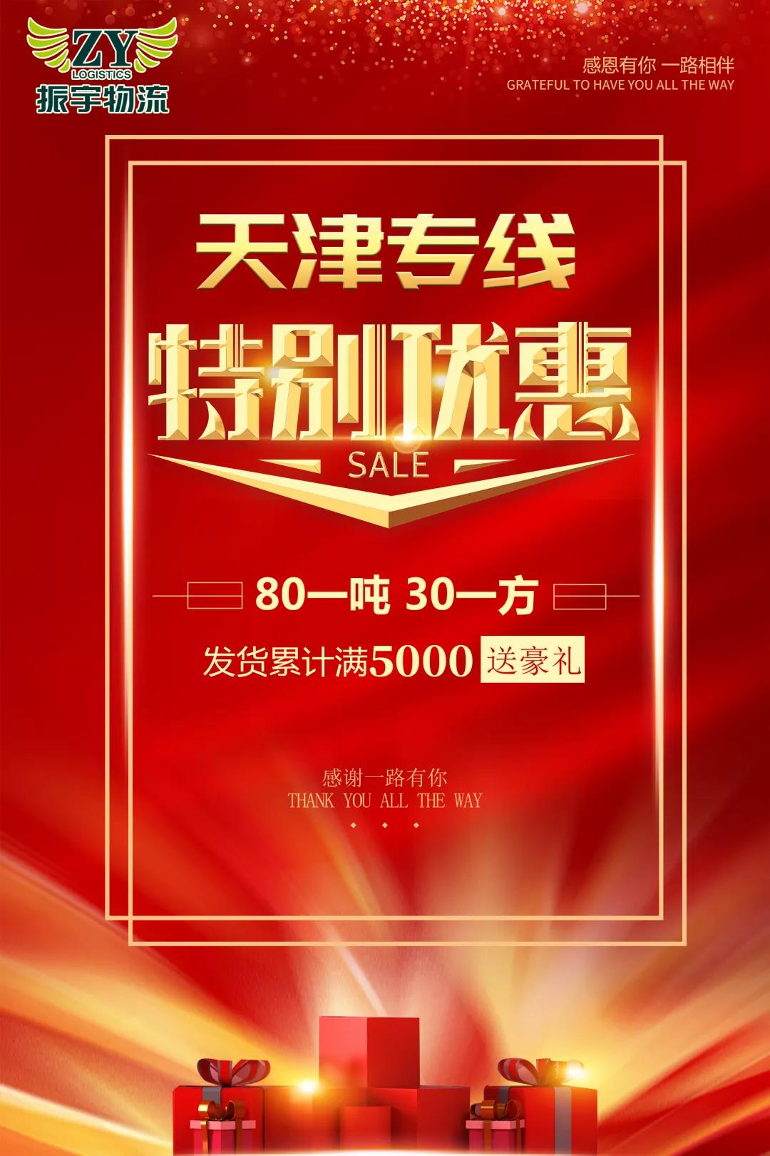 振宇物流天津專線優惠大酬賓: