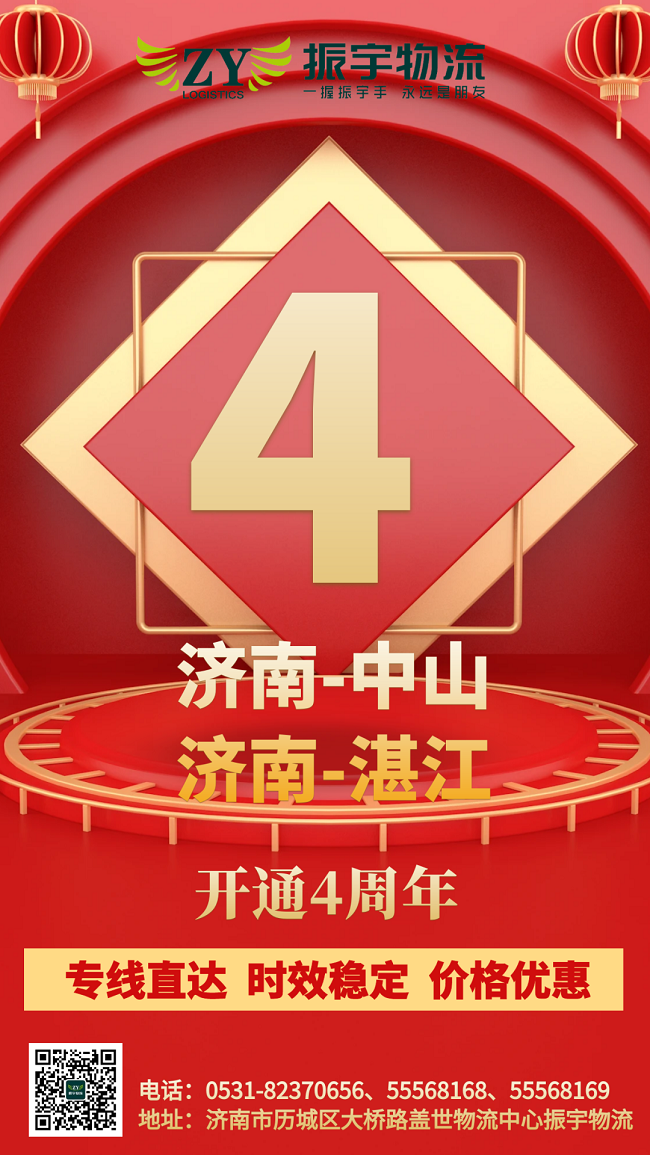 振宇物流集團丨濟南-中山、湛江直達專線開通四周年,線路發(fā)貨優(yōu)惠中……
