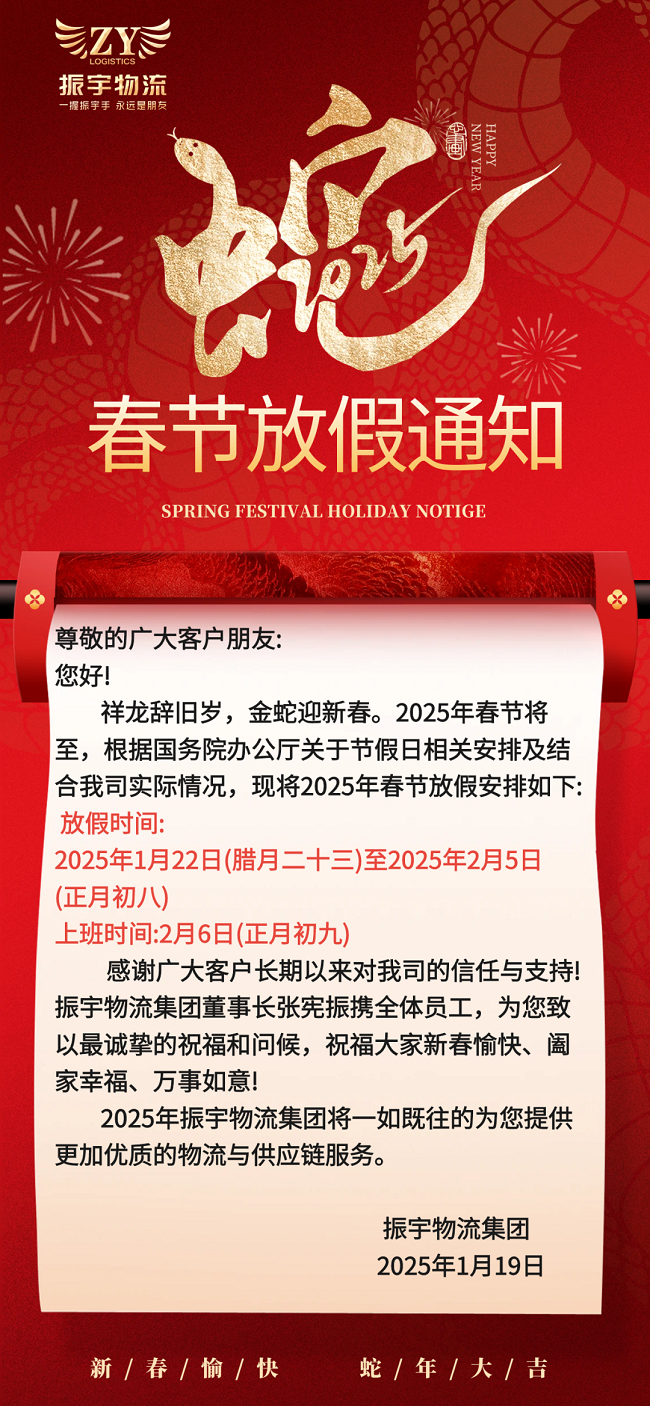 2025年振宇物流集團將一如既往的為您提供更加優質的物流與供應鏈服務。