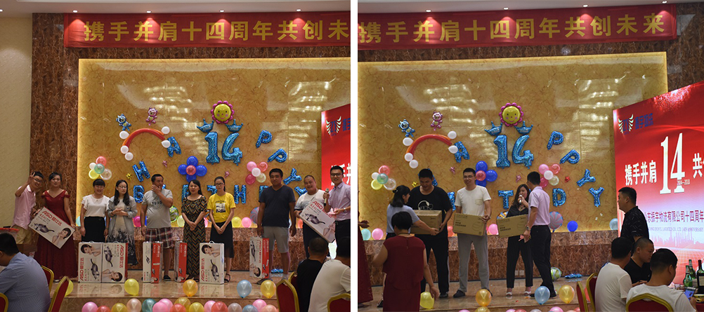慶典晚會上最激動人心的就數抽獎環節了,一輪接著一輪的抽獎,把慶典晚會的氣氛一次次推向最高點,整個慶典現場氣氛熱烈,節目內容精彩紛呈,令人回味,全體員工及嘉賓帶著熱情而來,滿載驚喜而歸。
