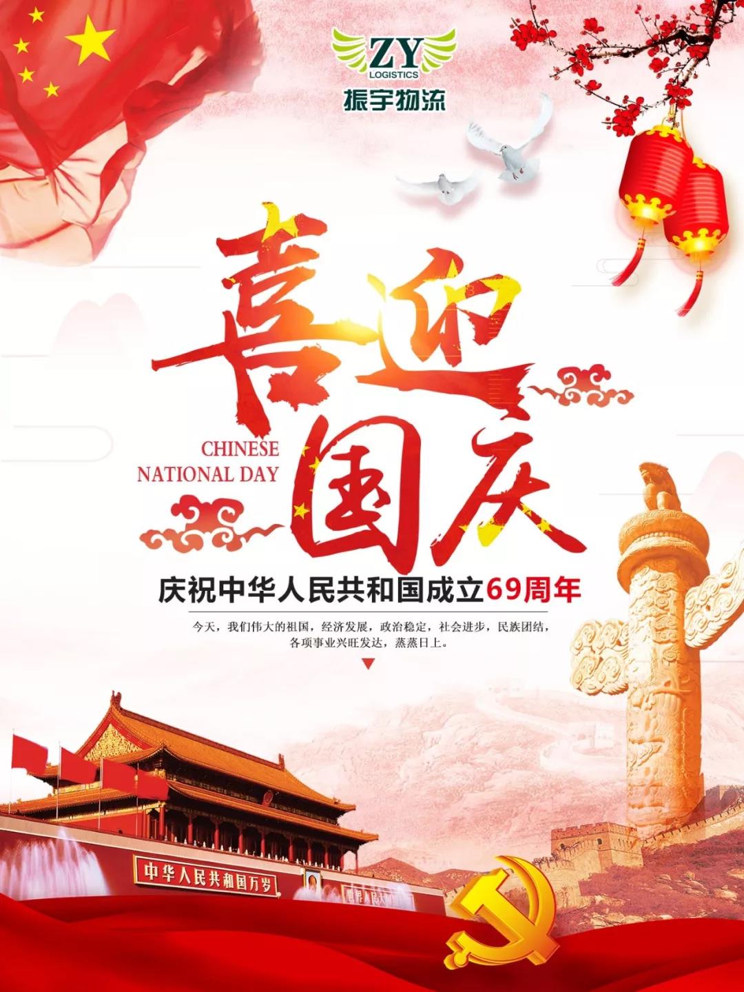 您好!感謝您們多年以來對(duì)振宇物流的鼎力支持,在2018國(guó)慶節(jié)即將來臨之際,振宇物流全體員工祝您國(guó)慶快樂!