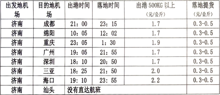 4、出港運(yùn)費(fèi)由濟(jì)南機(jī)場收取,落地提貨費(fèi)各地機(jī)場標(biāo)準(zhǔn)不一,其會據(jù)實收取。