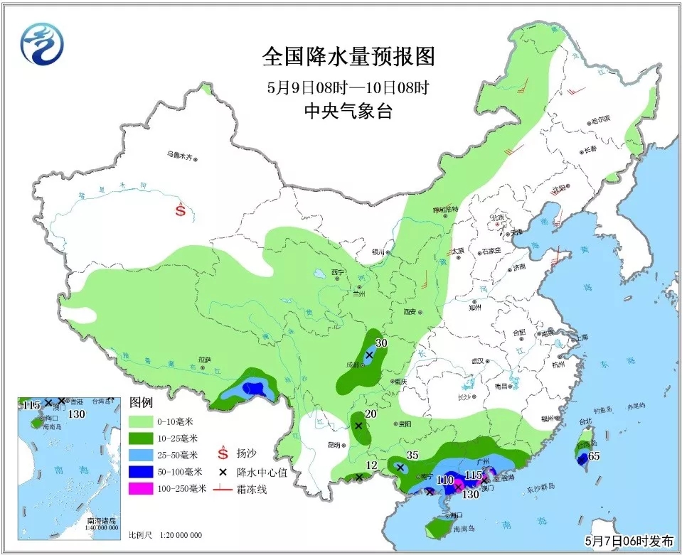 近期,持續的暴雨和強對流天氣給我國多地帶來不小影響。根據最新天氣預報,預計未來兩天華南大部、四川盆地西部、云南東部、西藏東南部、臺灣等地有中到大雨,其中,廣西東南部、廣東西南部、臺灣南部等地的部分地區有暴雨,局地大暴雨(100~130毫米);上述局地將伴有短時強降水等強對流天氣。